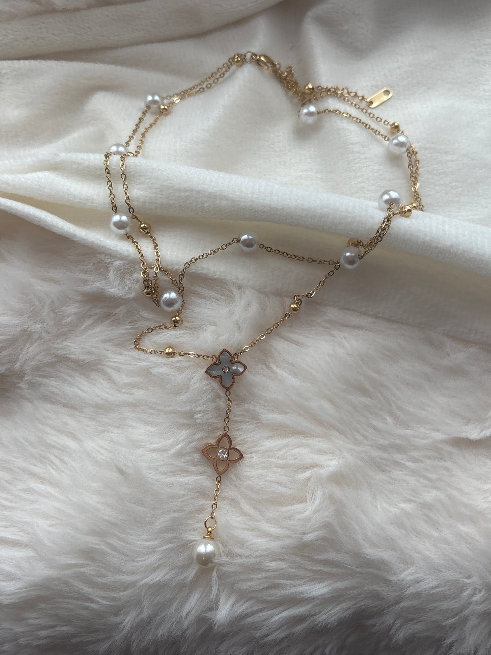 Sautoir Perles & Fleurs Inoxydable – Style Luxe