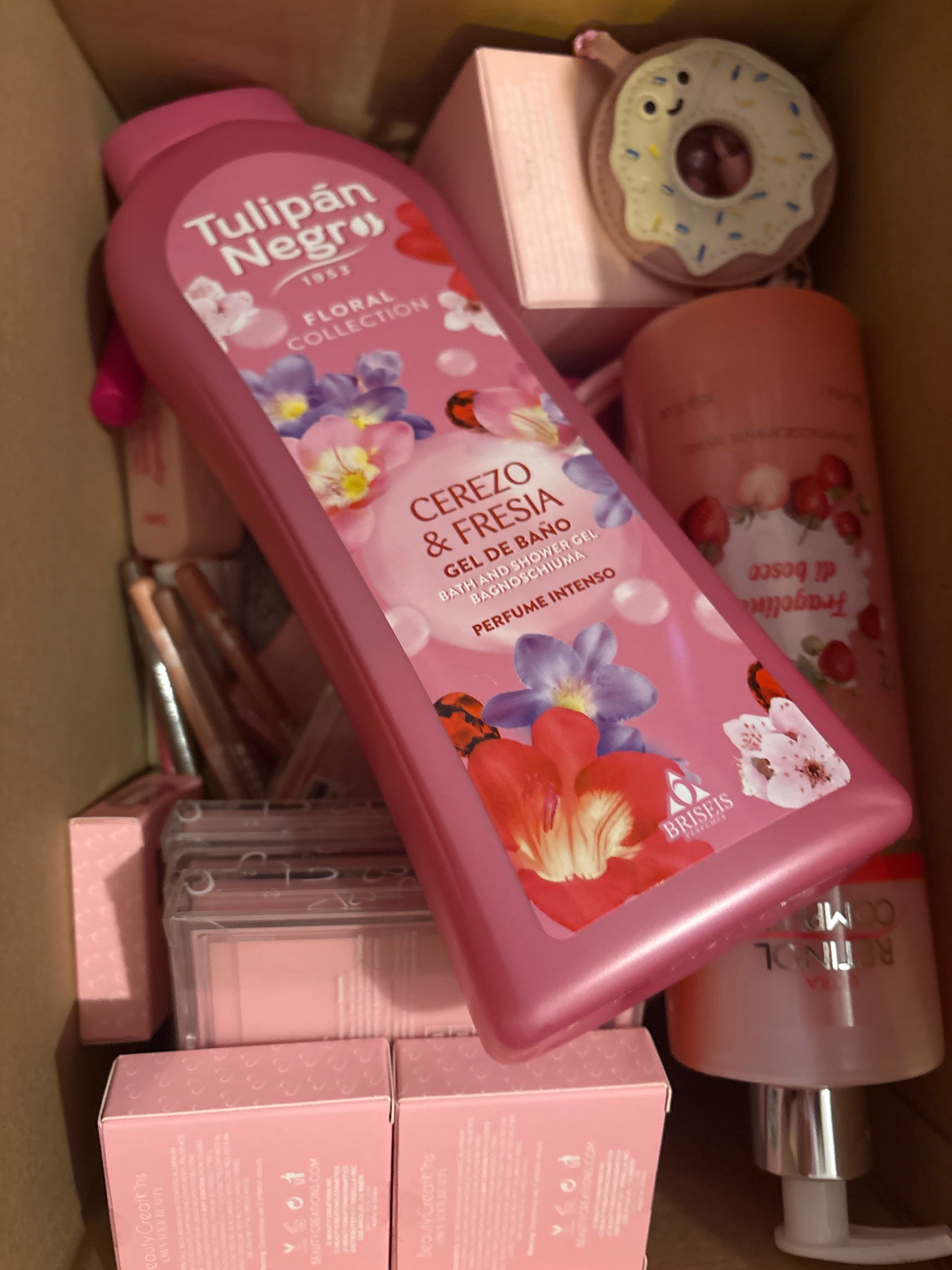 14 produits box : 3 eyeliner noir, mini palette highlighter, Mini palette blush, poudre de fee, primer mascara, gloss spicy rouge , gloss lip glow X2 ,inspi kiko gloss, x2 baume lèvre inspi tarte, colle faux cils = 0,50 centimes X14 = 7euro