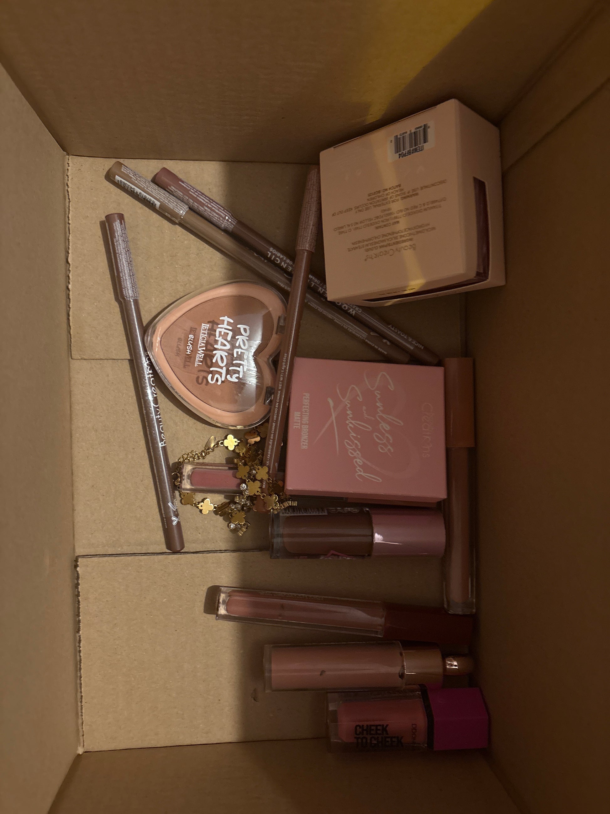 Produits box : (2 blush, 3 Rouge à Lèvre Matte, 1 gloss spicy, 1 poudre cœur) 7 articles : 0,50 centimes X7 = 3,50 euro